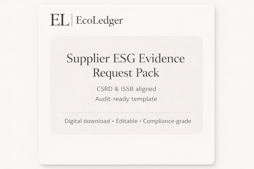Practical, compliance-grade templates designed to support CSRD, ISSB, and Scope 3 reporting — with clear evidence, ownership, and audit trails.